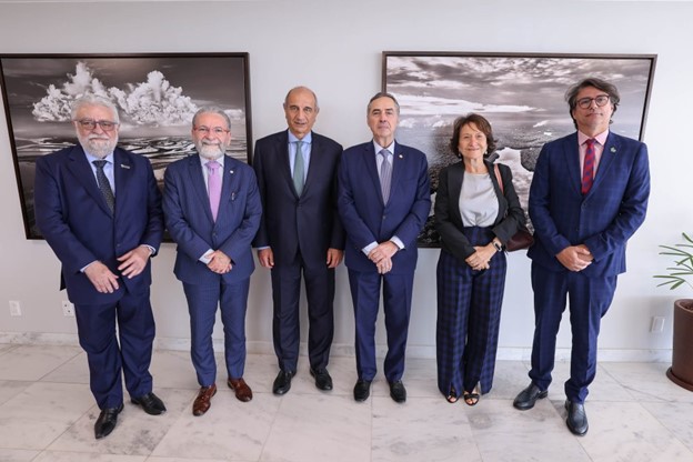 O presidente do Supremo Tribunal Federal (STF), ministro Luís Roberto Barroso, recebeu em 24 de janeiro, os presidentes da Associação Médica Brasileira (AMB), César Eduardo Fernandes; do Conselho Federal de Medicina (CFM), José Hiran Gallo; da Academia Nacional de Medicina (ANM), Eliete Bouskela; e da Associação Brasileira de Educação Médica (Abem), Sandro Schreiber.