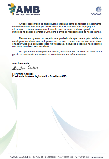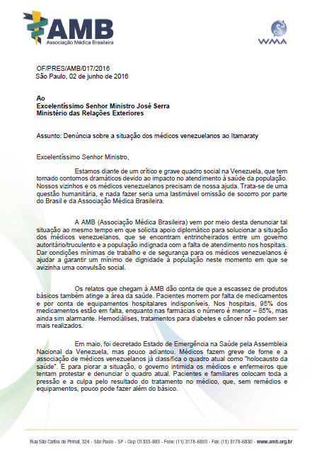 AMB DENUNCIA CAOS DA SAÚDE NA VENEZUELA AO ITAMARATY