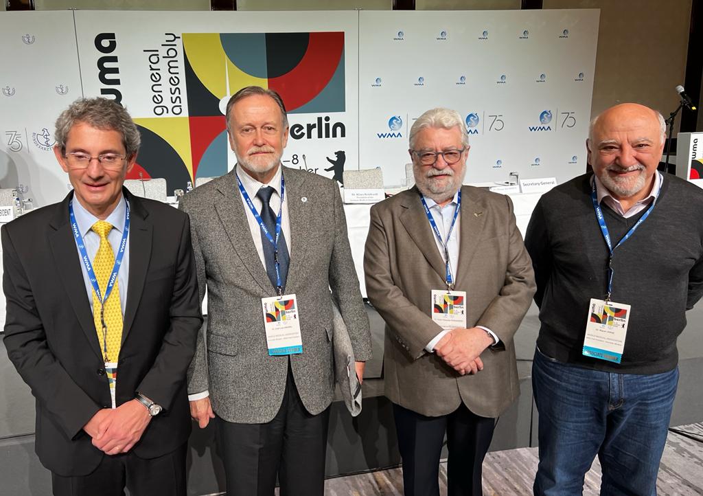 A Associação Médica Brasileira (AMB) participou da 73ª Assembleia Geral da Associação Médica Mundial (WMA), em Berlim, com uma delegação composta por César Eduardo Fernandes, Presidente da AMB, Carlos Vicente Serrano Júnior, Diretor de Relações Internacionais da instituição, José Luiz Gomes do Amaral e Miguel Roberto Jorge, ambos ex-Presidentes da WMA. O evento aconteceu entre os dias 5 e 8 de outubro e reuniu representantes de 57 associações médicas nacionais de todo o mundo.