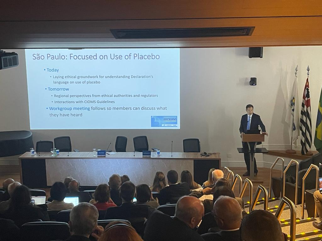 O tema principal deste encontro é a relevância do uso de placebo em ensaios clínicos. O encontro promove a integração de renomados especialistas nacionais e internacionais objetivando auxiliar os membros do Grupo de Trabalho da WMA para este fim.