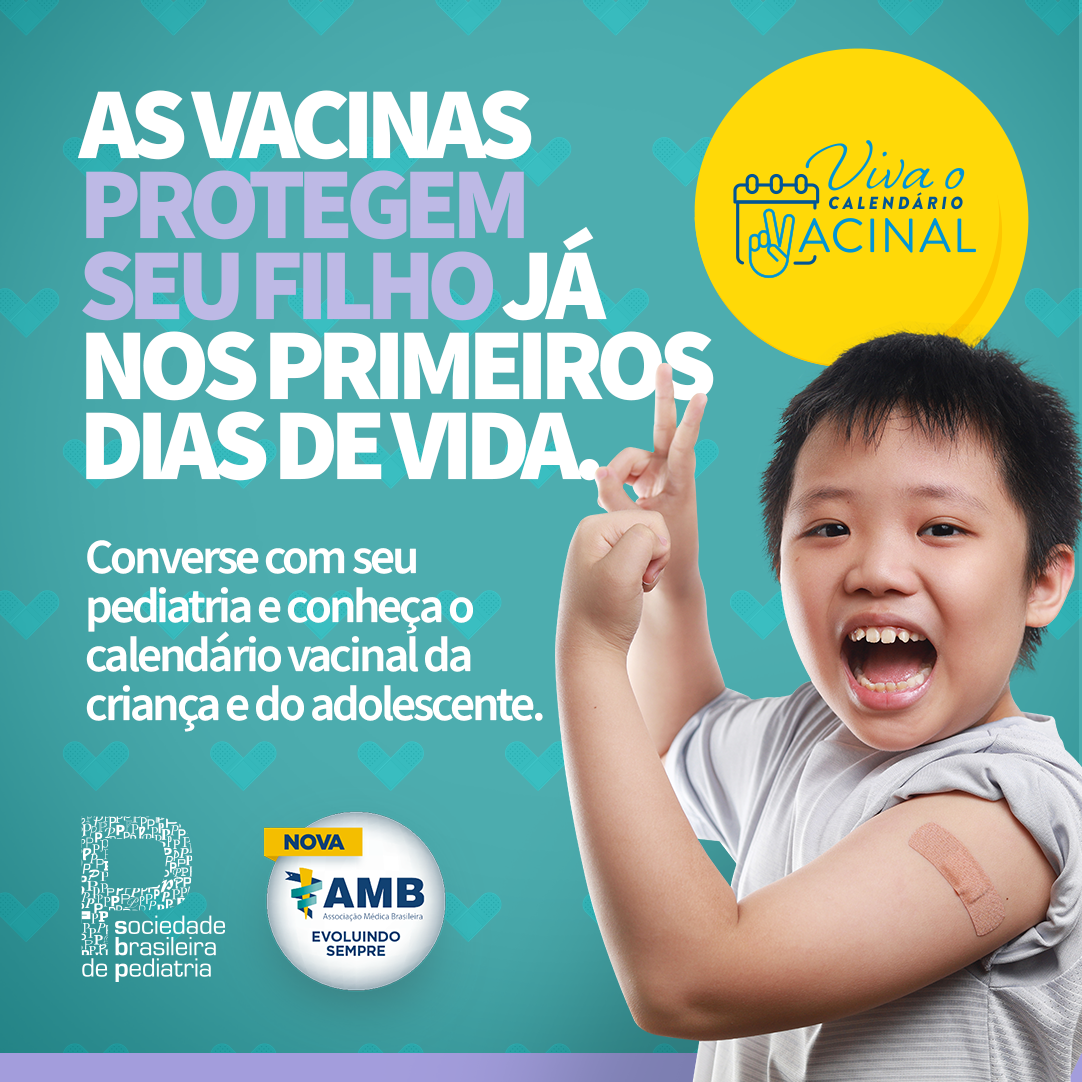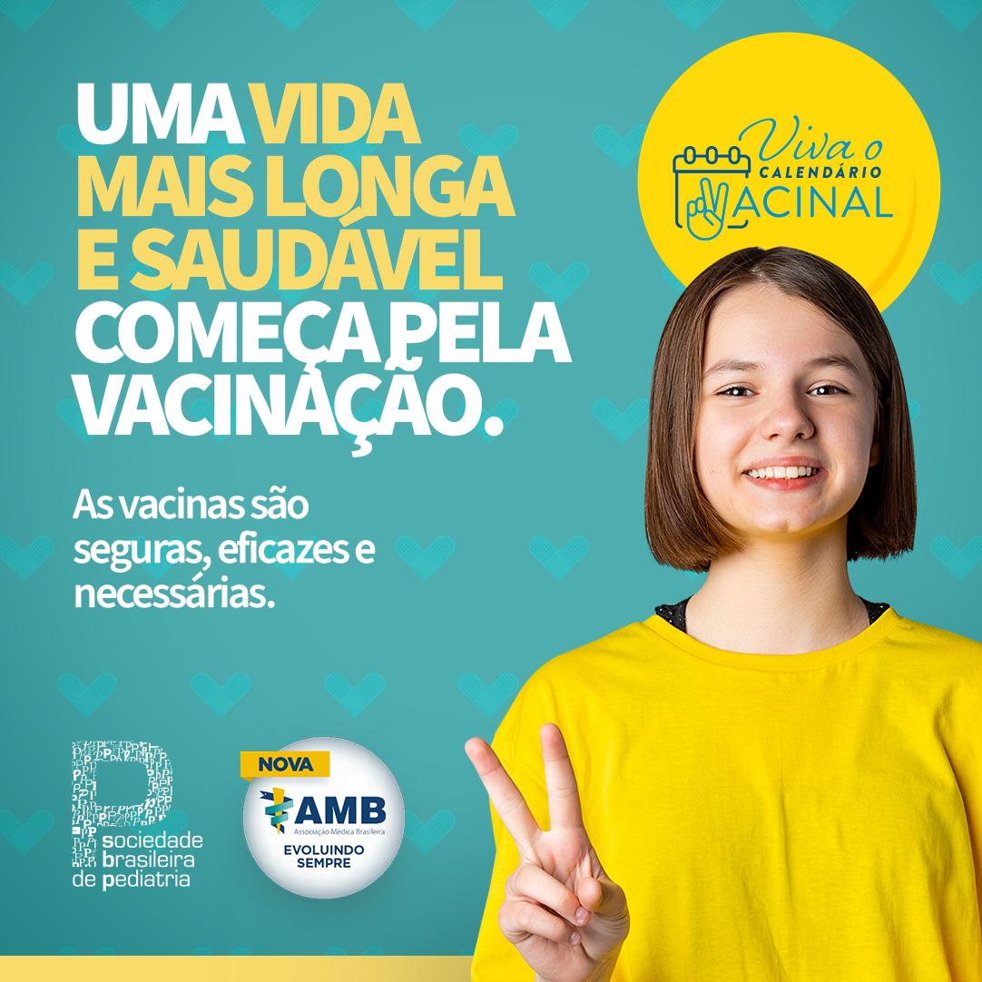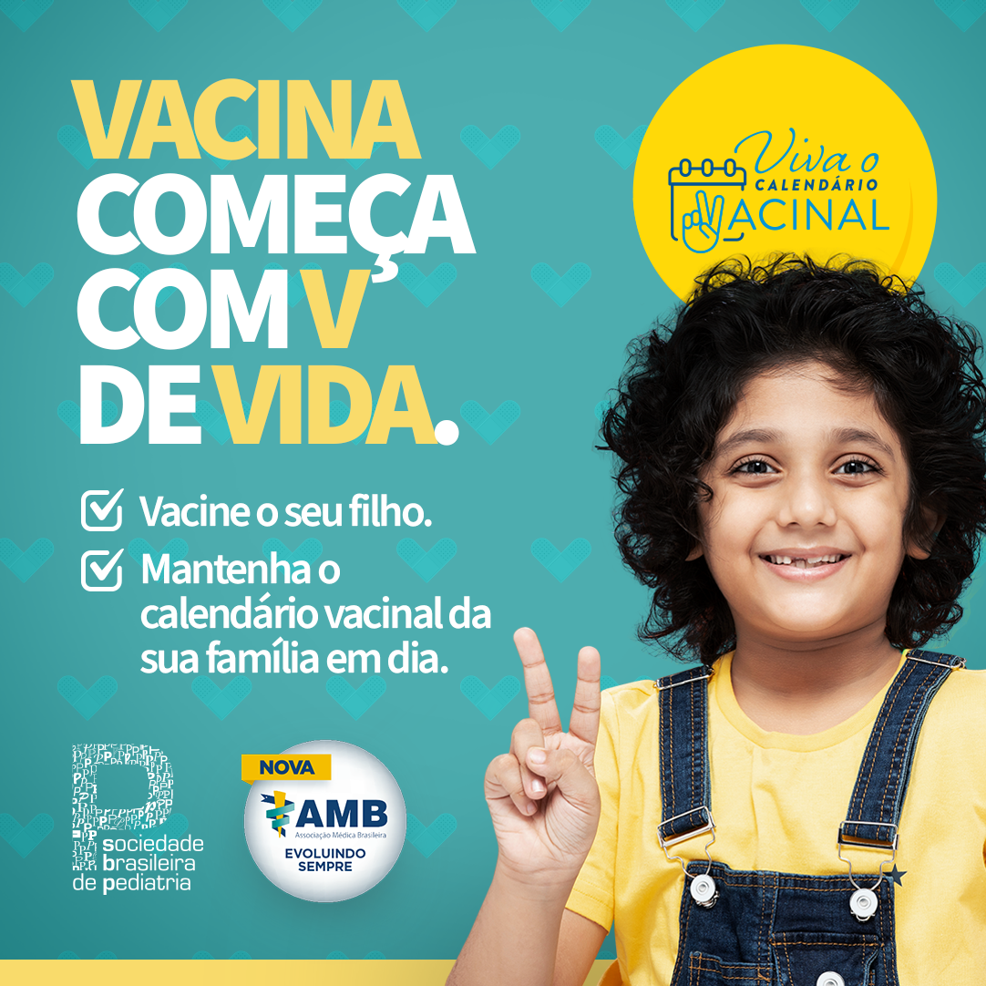 É neste contexto que a Associação Médica Brasileira (AMB), em parceria com a Sociedade Brasileira de Pediatria (SBP), lançou uma campanha de comunicação com o lema “Vacina começa com V de Verdade, de Vitória, de Vida”. Chegou a hora de nos mobilizarmos em favor da vida. Abrace essa causa e compartilhe a nossa campanha!