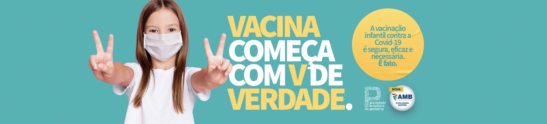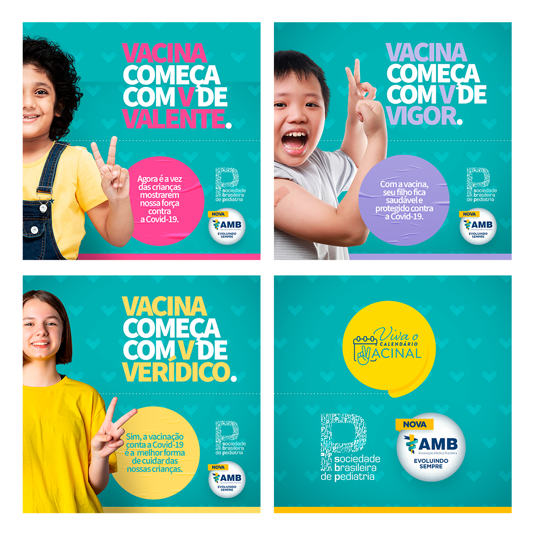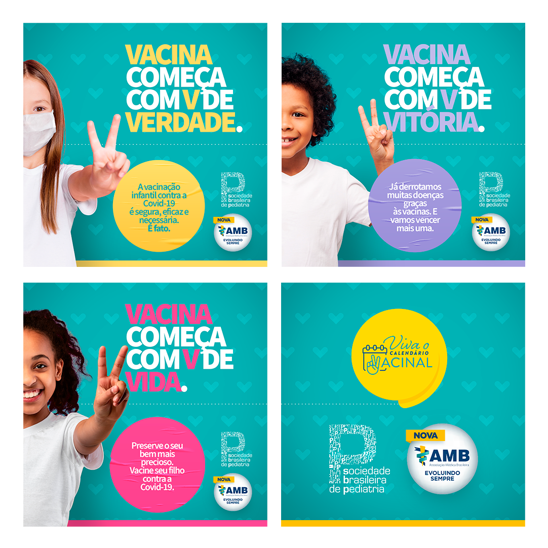 É neste contexto que a Associação Médica Brasileira (AMB), em parceria com a Sociedade Brasileira de Pediatria (SBP), lançou uma campanha de comunicação com o lema “Vacina começa com V de Verdade, de Vitória, de Vida”. Chegou a hora de nos mobilizarmos em favor da vida. Abrace essa causa e compartilhe a nossa campanha!
