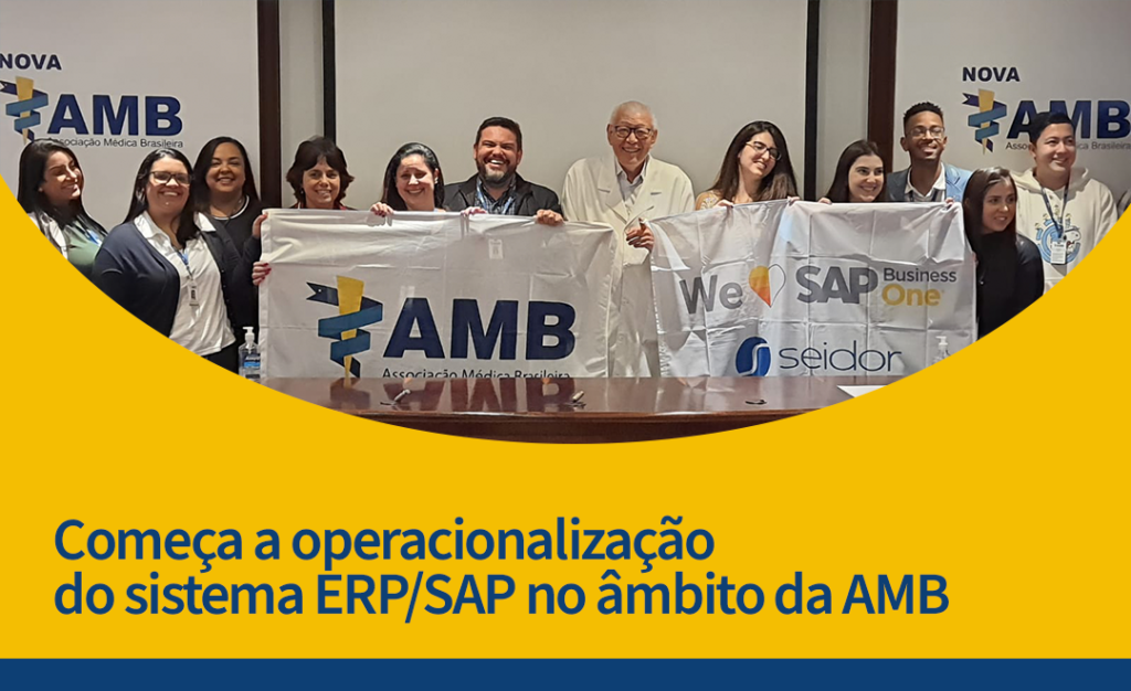 Para registrar o início da operacionalização do sistema SAP no âmbito da AMB, foi realizada no dia 01 de abril de 2022 no auditório da Sede da AMB o “cerimonial da entrega da bandeira ERP/SAP” que contou com a participação dos colaboradores da AMB e representantes da empresa Seidor Tecnologia.