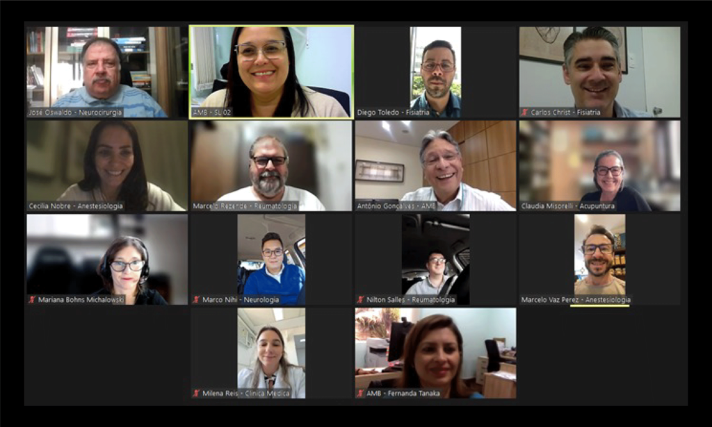 São Paulo, SP. 26 de abril de 2023. A comissão de dor da AMB, composta por nove especialidades, se reuniu no dia 20 de abril para discutir sobre seus próximos passos e revisar o edital que compõe o escopo da prova de atuação em dor, que garante certificado ao profissional aprovado e a entrega de um melhor serviço à população relacionado ao tratamento de dores. A preparação para a prova é capaz de analisar aptidões ligadas à identificação, diagnóstico e em condutas assertivas diante das principais síndromes dolosas. O encontro virtual foi aberto pelo Dr. Antônio José Gonçalves, secretário geral da AMB, que cumprimentou todos os participantes.