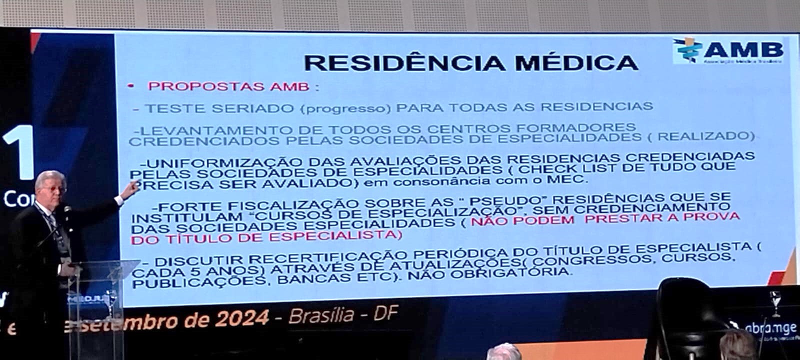 O diretor científico da Associação Médica Brasileira (AMB), Dr. José Eduardo Dolci apresentou no último dia do 11º Congresso Brasileiro Médico, Jurídico da Saúde (COMEDJUS), realizado em Brasília, o tema A Baixa Oferta de Residência Médica no Brasil e as Consequências dos Decretos 11.999, que prevê a retirada do protagonismo de profissionais capacitados e experientes da medicina em importantes decisões que refletem diretamente na saúde pública do Brasil, e 12.062, que modifica o Decreto nº 11.999 sobre a Comissão Nacional de Residência Médica e o exercício das funções de regulação, supervisão e avaliação de programas de residência médica e das instituições que oferecem esses serviços.