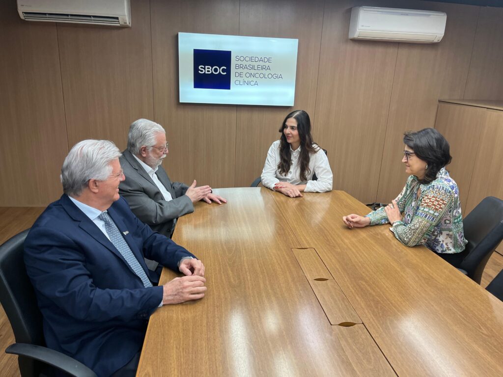 O presidente da Associação Médica Brasileira (AMB), Dr. César Eduardo Fernandes, e seu diretor científico, Dr. José Eduardo Dolci, estiveram visitando a sede da Sociedade Brasileira de Oncologia Clínica (SBOC), nesta quarta-feira (4), para conhecer as instalações e o trabalho desenvolvido pela entidade médica, bem como estreitar parcerias voltadas às melhorias do exercício da Medicina no país.  Na oportunidade, os gestores foram recebidos pela presidente da sociedade, Dra. Anelisa Coutinho, e pela diretora executiva, Dra. Marisa Madi.