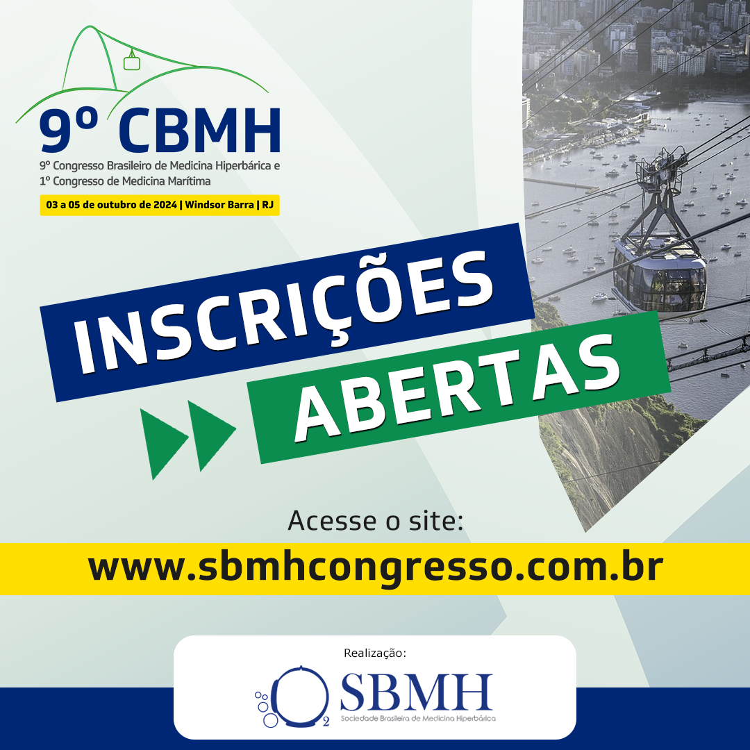Inscrições abertas para o 9º Congresso Brasileiro de Medicina Hiperbárica (CBMH) & 1º Congresso de Medicina Marítima (CMM).