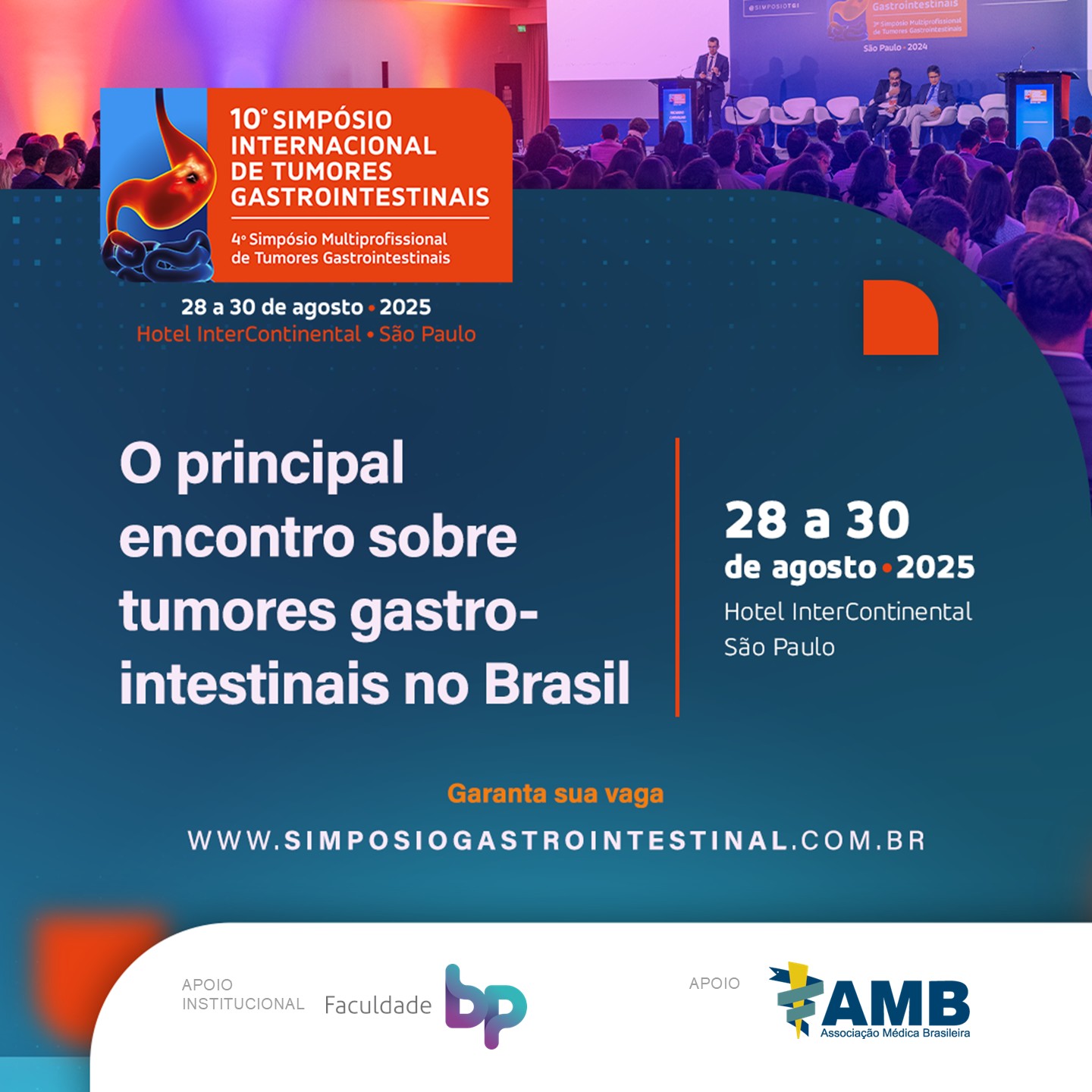 Em 2025, acontece a 10ª Edição do Simpósio Internacional de Tumores Gastrointestinais e 4ª edição do Simpósio Multiprofissional de Tumores Gastrointestinais.