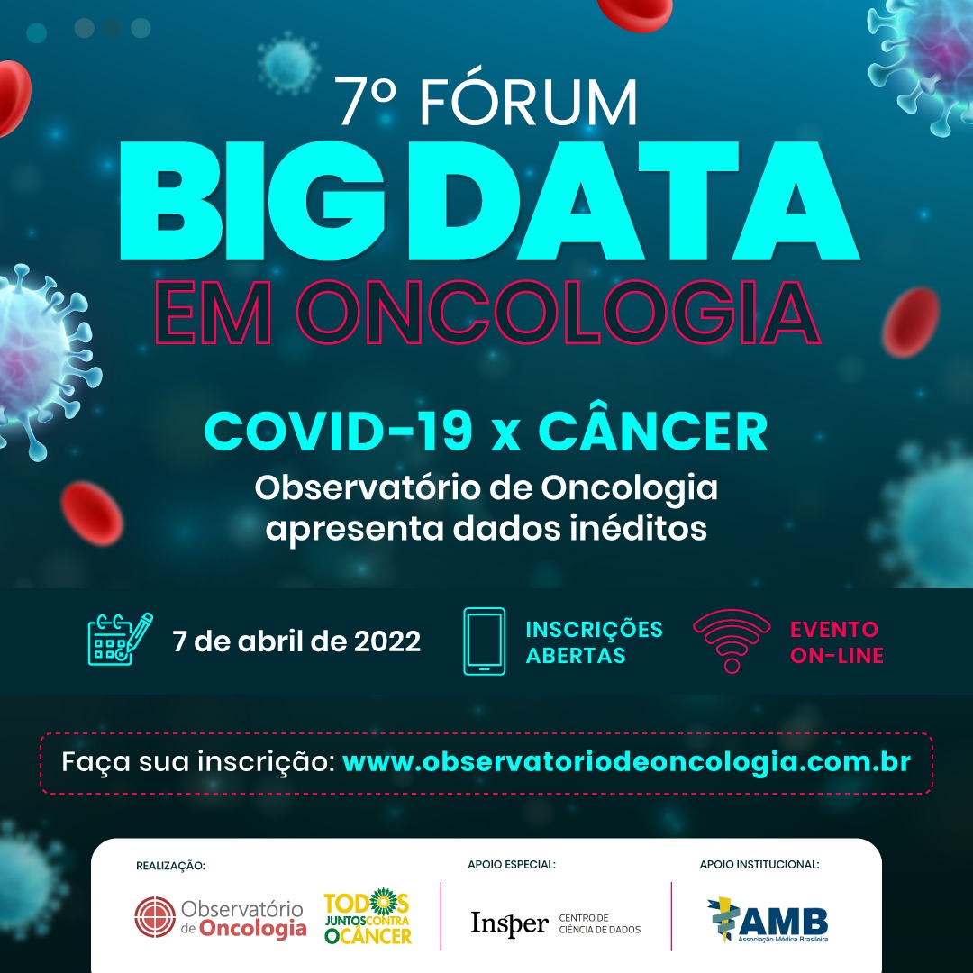 O 7° Fórum Big Data em Oncologia acontece no dia 7 de abril, de forma totalmente digital, com o tema COVID-19 x CÂNCER.
