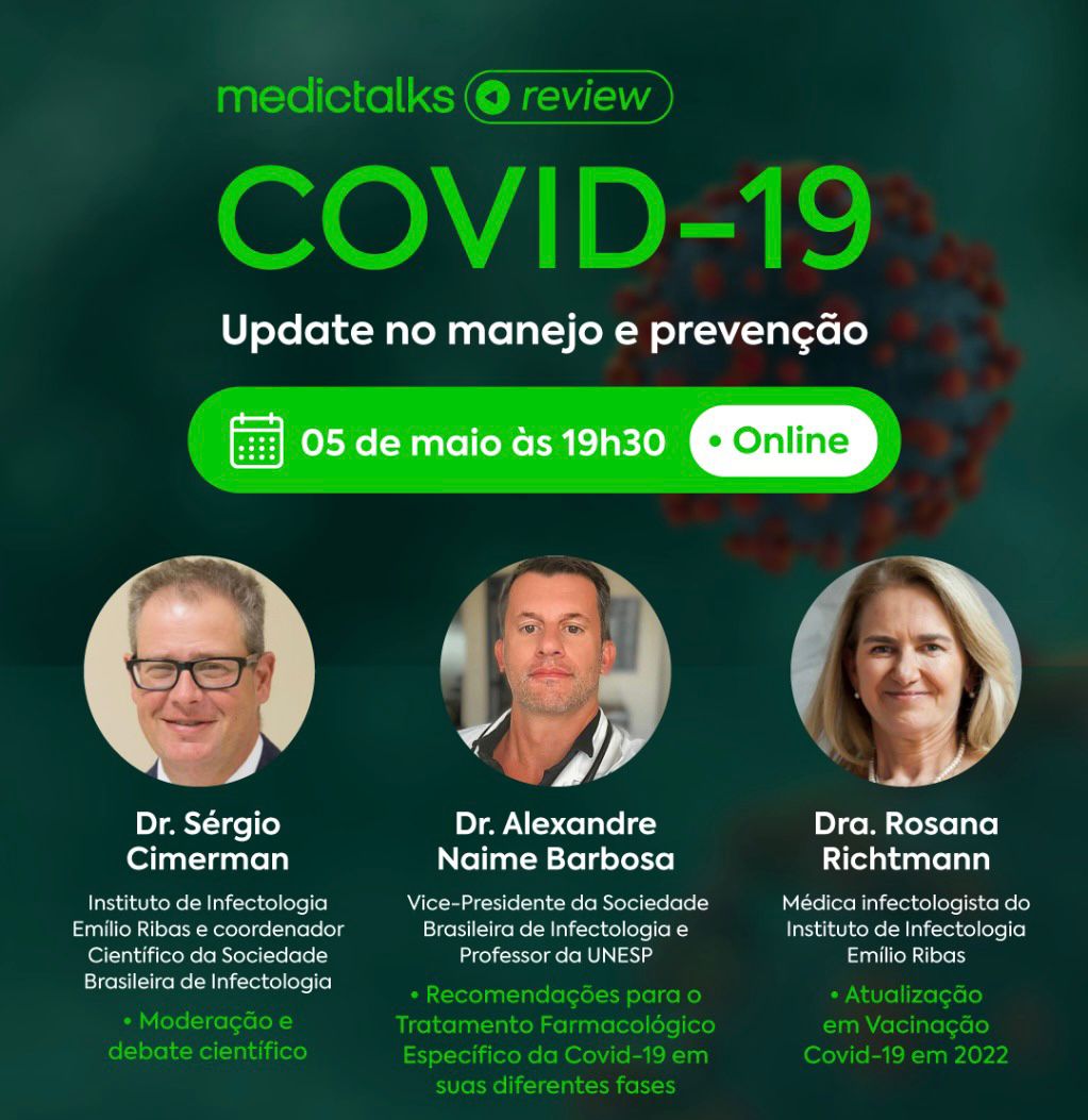 Moderação e Debate Científico: Dr. Sérgio Cimermam – Infectologista do Instituto de Infectologia Emílio Ribas e Coordenador Científico da Sociedade Brasileira de Infectologia