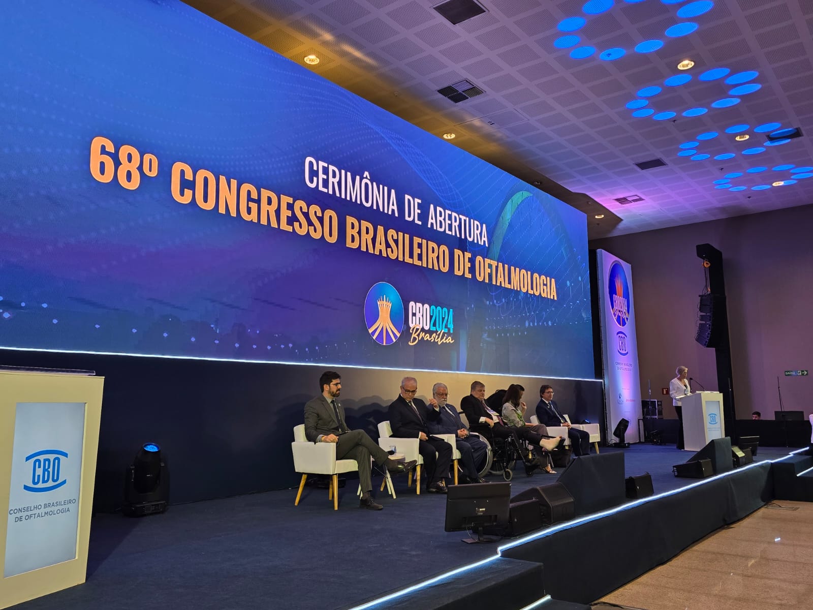 O presidente da Associação Médica Brasileira (AMB), Dr. César Eduardo Fernandes participou, nesta quarta-feira (4), da cerimônia de abertura da 68ª edição do Congresso Brasileiro de Oftalmologia (CBO), que está sendo realizado no Centro Internacional de Convenções do Brasil – CICB –, em Brasília (DF), entre os dias 4 e 7 de setembro. Dr. César agradeceu à presidência do CBO pela oportunidade de estar no congresso e parabenizou a todos os envolvidos na organização do evento. Ele também falou sobre a importância de as entidades médicas realizarem encontros como esse, unindo profissionais renomados da medicina brasileira e jovens médicos, que estão ingressando no mercado de trabalho para aperfeiçoar técnicas, adquirir conhecimento, se atualizarem e trocarem experiências, por meio da discussão de temas relevantes para a qualificação dos médicos e abordar as frentes de inovação ligadas à tecnologia. “Me sinto honrado em poder estar presente no CBO 2024, representando a AMB, junto ao nosso diretor científico, Dr. José Eduardo Dolci; e ao secretário-geral, Dr. Florisval Meinão, e acompanhar de perto o gigantismo dessa especialidade. É uma sociedade que temos profunda gratidão”, celebrou Dr. César.
