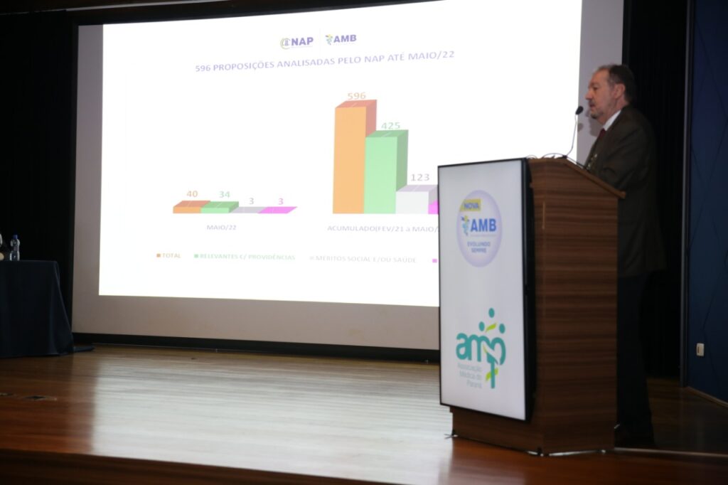 O Diretor de Assuntos Parlamentares da Associação, Luciano Gonçalves de Souza Carvalho teve a palavra em seguida. Neste momento, os presentes puderam ter acesso às atividades do Núcleo de Atuação Parlamentar (NAP) da instituição. O NAP, de atuação fundamental em Brasília, tem como um de seus objetivos atuar de forma proativa para que a AMB possa trabalhar sempre pela boa prática médica no Brasil, analisando, por exemplo, projetos de lei relacionados à saúde, propostos no Congresso Nacional.